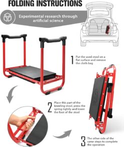 Garden Kneeler and Seat Heavy Duty, Foldable Gardening Stool – 2024 Upgraded Widened to 10″ Stable Wear-Resistant Prevent Knee and Back Pain, Bench High-End 2 Large Tool Bags Gift for Women, Red