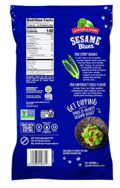 Organic Blue Corn, Expeller Pressed Canola Oil and/or Safflower Oil and/or Sunflower Oil, Organic Sesame Seeds, Sea Salt.