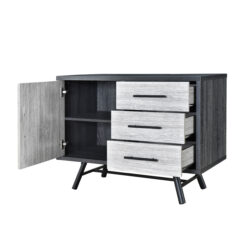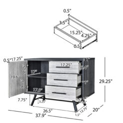 Frame your interior space with an outstanding piece that brings your home stunning looks and quality function. Featuring a beautiful wood-like appearance and smooth metal legs, this impressive sideboard brings a sophisticated modern industrial look to your home. This accessory is completed with three drawers and a cabinet with shelves for plenty of storage space, giving you ample room to organize your items. Blending seamlessly with your existing decor, this chic sideboard will bring out the best of your interior space.