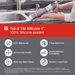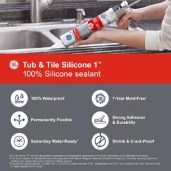 GE Tub and Tile Silicone 1-Sealant is a 100% waterproof, 100% silicone sealant ideal for areas susceptible to moisture, such as sinks, tubs, showers, fixtures, countertops, backsplashes, and other plumbing projects. This silicone caulking offers permanent flexibility and strong adhesion, and it’s designed to be resistant to shrinks and cracking. Plus, GE Tub and Tile Silicone 1 caulk resists mold and mildew growth it’s backed by a mold-free product protection for 7-years to prevent unsightly stains. Use our silicone caulking bathroom sealant on a variety of common surfaces, including most metals, plastics, and woods; glass, drywall, plaster, granite, and more.