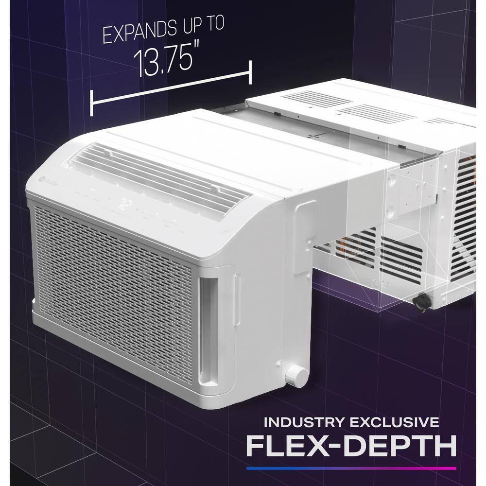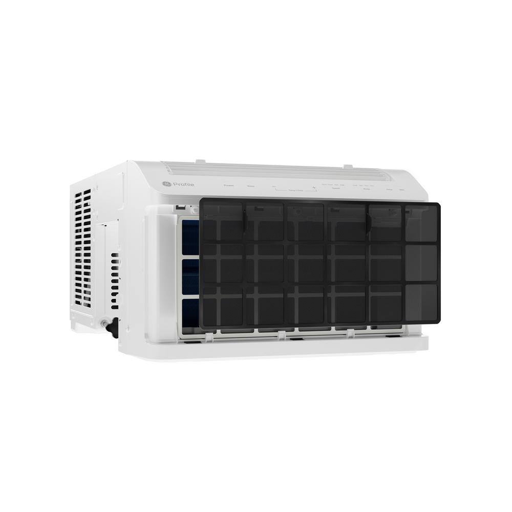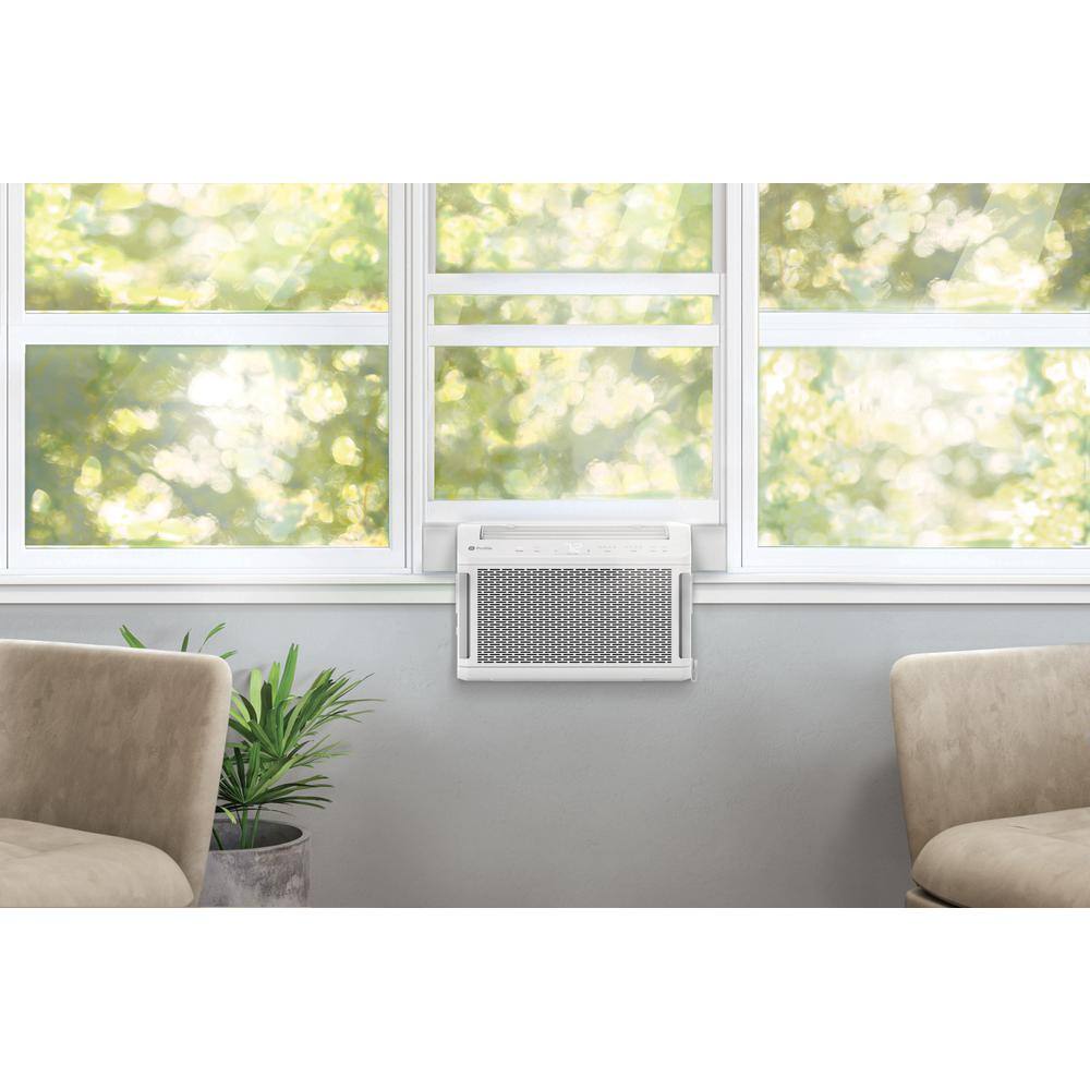 As the Quietest Window Air Conditioner Brand in the United States*, GE Profile is dedicated to providing the right solutions for rooms of various sizes. Our window air conditioners are designed to offer exceptional comfort with minimal noise, and our latest WiFi connected technology makes these products versatile and easy to use. The ClearView 8300 BTU smart window air conditioner cools mid-size rooms up to 350 square feet and sits below the window sill to give you a full view to the outside, allowing more natural light into your room. The easy and safe installation with no mounting bracket needed** allows you to freely open and close the window with the unit installed. The industry exclusive flex-depth fits wall thickness between 4.5″” to 13.75″”, so you can customize your ClearView fit. Energy-efficient cooling with four modes and three fan speeds provide flexible and optimal home comfort. Integration with the SmartHQ app allows you to monitor, schedule, and control your connected air conditioner from anywhere, or check your energy usage and set-up geolocation. Use the electronic controls with included remote to easily to adjust and manage your settings. This AC installs in a double hung window with included window kit.*Based on avg sound ratings by brand of 5K-24K BTU Window AC from publicly available info, compared to 74% of the product in the US WAC category per Traqline 9/21**Subject to local code approval
