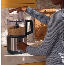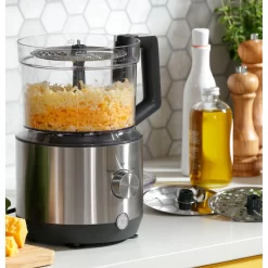 GE Food Processor | 12 Cup | Complete With 3 Feeding Tubes, Stainless Steel Mixing Blade & Shredding Disc | 3 Speed | Great for Shredded Cheese, Chicken & More | Kitchen Essentials | 550 Watts