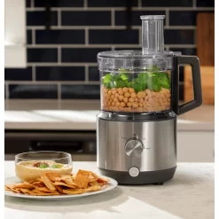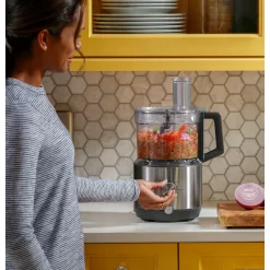 - 12-Cup Capacity – this 12-cup food processor has enough capacity for the whole family, and its ergonomic handle and measurement markings make meal prep easy