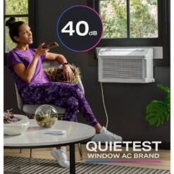 - Ultra-quiet: this quiet air conditioner reaches sounds as low as 40dB, underlining GE profile’s rating as the quietest window AC brand, (based on avg sound ratings by brand of 5000 – 24000 BTU window AC from publicly available info, compared to 74% of the product in the US WAC category per traqline 9/21)