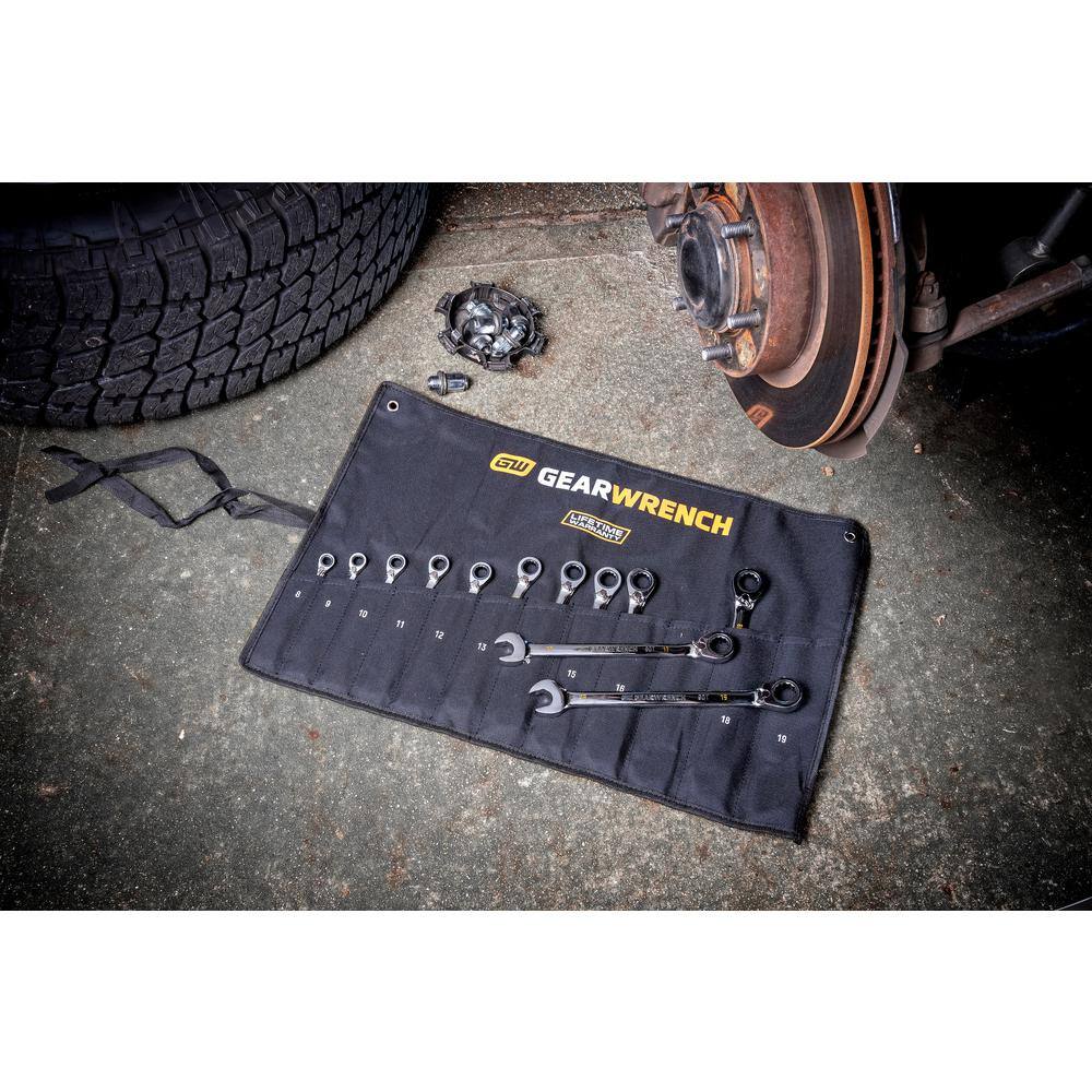 GEARWRENCH 86628 Metric 12-Point 90-Tooth Reversible Ratcheting Wrench Set with Wrench Roll (12-Piece)