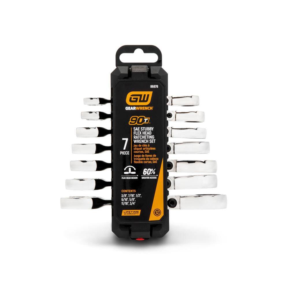 GEARWRENCH 86878 90-Tooth 12 Point SAE Stubby Flex Ratcheting Combination Wrench Set (7-Piece)