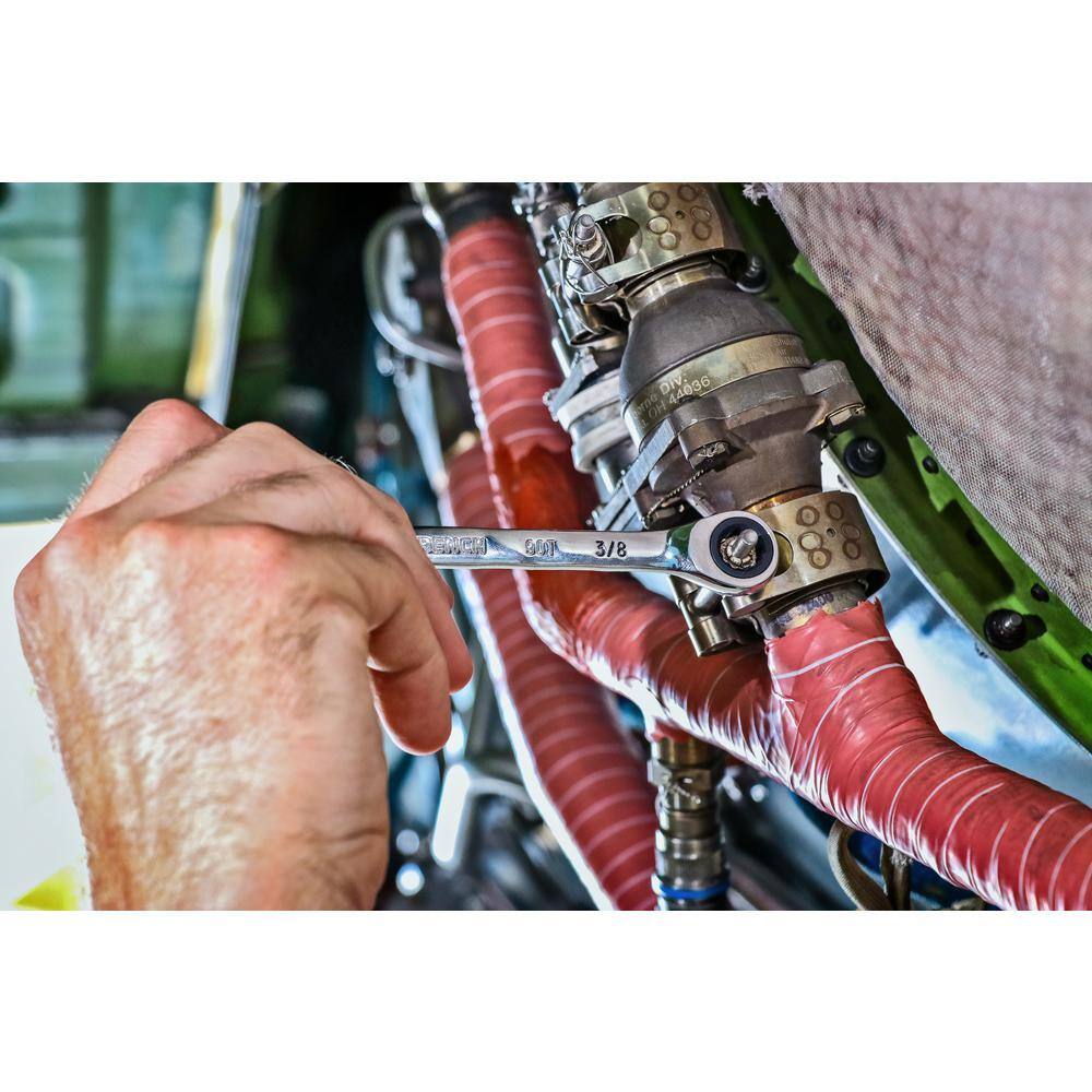- 90-tooth ratcheting box end delivers a 4° swing arc to turn a fastener in tight spaces