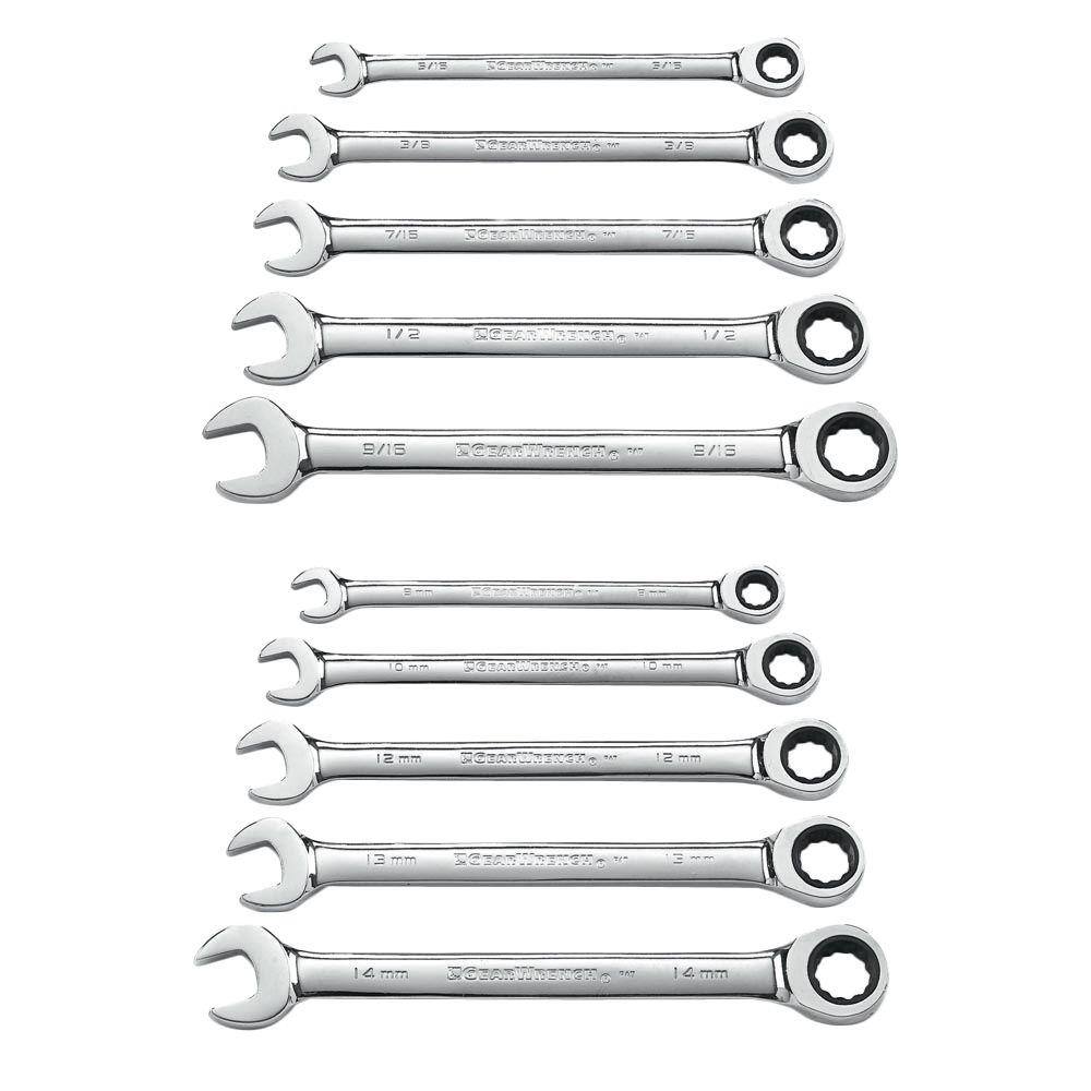 GEARWRENCH 9418 SAE/Metric 72-Tooth Combination Ratcheting Wrench Tool Set (10-Piece)