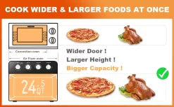 [Family size&Space saving design]24QT,3 rack levels allow you to prepare family-sized quantities for up to 10 people at once, or control how fast and crispy your food cooks. With a compact and sleek design this air fryer oven can be placed on your countertop or stored away when not in use.[Healthy,Fast,Powerful]ETL listed for safety,1700W motor helps to efficiently cook food in the healthiest way possible by cutting over 85% of fats, while an included baking tray also acts as a drip tray to catch any excess oil.