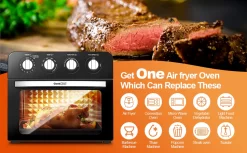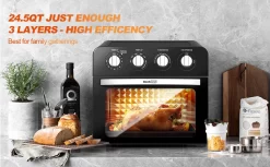 Geek Chef Air Fryer Oven , Countertop Toaster Oven,3-Rack Levels, 4 mechinical knobs, Black housing with single glass door(24 QT 1700W)