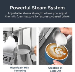 - POWERFUL MILK STEAMER – Espresso machine with milk frother has steady steam wand turns milk into silky smooth microfoam. Latte machine is convenient for you to create latte, cappuccino, Mocha or plain white coffee art at home or office. Removable frothing nozzle makes cleaning easy.
