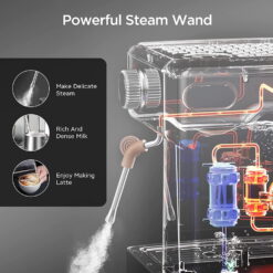 - 20 BAR PROFESSIONAL PUMP – 20 bar high pressure extraction out of the quality coffee liquid filled with golden crema, making the espresso more aromatic and richer.Stainless steel boiler system makes espresso more fragrant and rich in crema.
