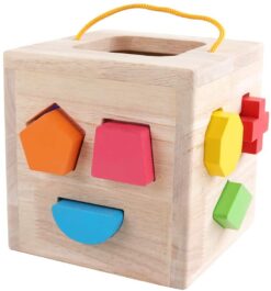 - SHAPE SORTER CUBE TOY: It comes with 12 shaped multiple color blocks. Bright colors and chunky size make it easy to little hands to grasp. As they drop into the shape sorting cube, fit the pieces in the matching holes. Sturdy construction, premium craftsmanship that can be used for several years