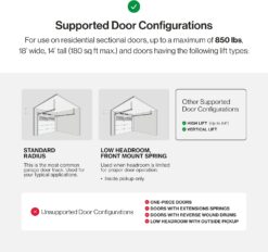 | Coverage | 850 lb doors, up to 14 ft in height |