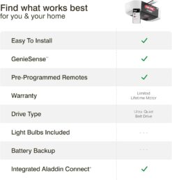 - SMART GARAGE SYSTEM COMPATIBLE WITH ALEXA & GOOGLE ASSISTANT: The Integrated Aladdin Connect technology allows you to monitor, open and close your garage door from anywhere with your smartphone. New features allow you to operate the door with voice control using the Aladdin Connect custom skill for Alexa or Google Assistant