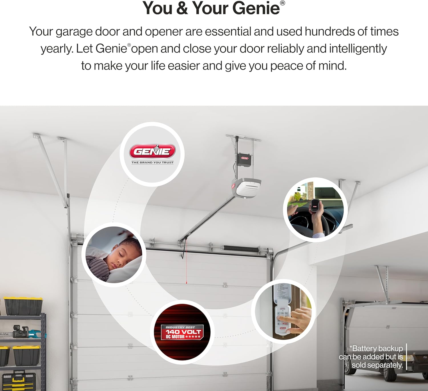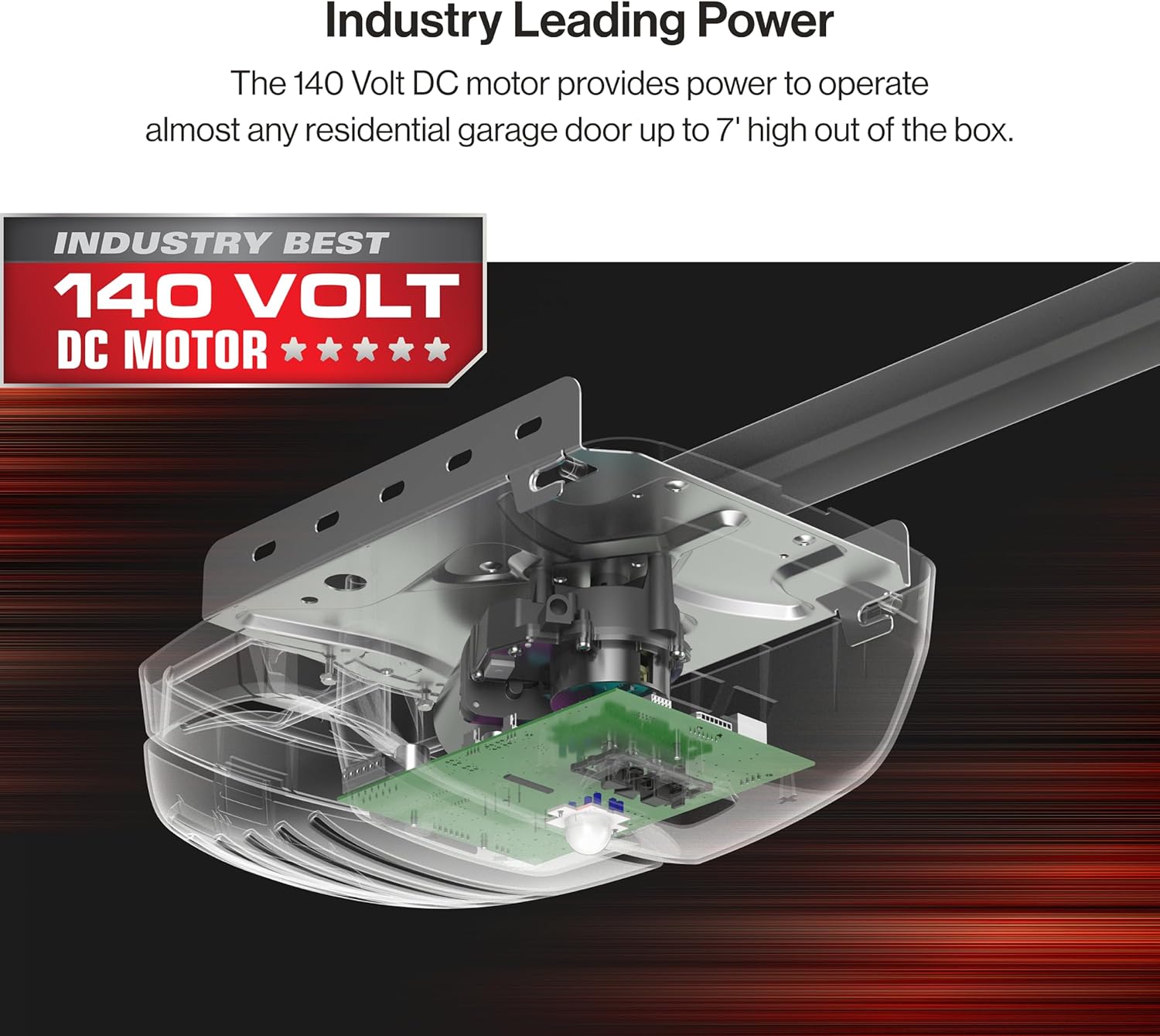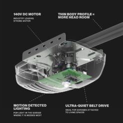 - POWERFUL AND SMOOTH OPERATION: The powerful 140V DC motor features a soft start and stop control for smooth door travel.
