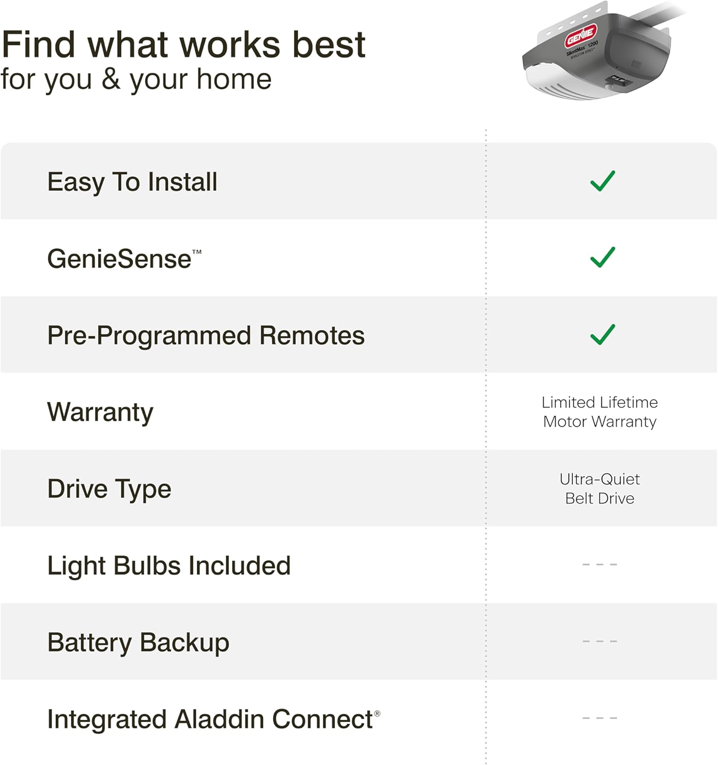 - ULTRA-QUIET OPERATION: The SilentMax 1200 is an ideal garage door opener for garages attached to living spaces.