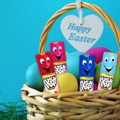 The Giant Push Pop is the ultimate hard candy lollipop gift for Easter baskets and Easter egg hunts! With 10 delicious Push Pops packed into a giant Push Pop container, this assortment of suckers is adored by kids and adults. It’s perfect for delighting family and friends during this Easter season. The Giant Push Pop makes a great gift or keepsake. Sometimes kids need a candy break! Push Pop lollipops are everyone’s favorite deliciously simple on-the-go candy. Each individual lollipop comes in an easy-to-carry case and cap that is portable and durable — it’s ideal for enjoying the intense fruity flavor of these lollipops now and saving for later. This assortment of hard sucker treats is the ideal Easter candy, so make sure to add one to your kid’s Easter basket this year. This giant candy can is the best candy gift for the Easter festivities, and the new Giant Push Pop container makes a great collectible. So, what are you waiting for? Give the gift of a Giant Push Pop, perfect for Easter gifts, birthdays, and special occasions! Each Giant Push Pop includes 10 individually-wrapped Push Pop candy lollipops in a selection of 4 assorted fruity flavors of classic mouthwatering favorites – Strawberry, Blue Raspberry, Berry Blast, and Watermelon. Push Pop lollipops come with an easy-to-use resealable cap, perfect to enjoy some now and save some for later! And hold onto the Giant Push Pop canister for a collectible keepsake! Our Easter candy mix is shelf-stable and long-lasting. Disclaimer: Not for children 3 and under.