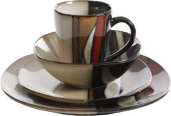 Gibson Elite Althea 16 Piece Reactive Glaze Dinnerware, Multicolor -, Service for 4 (16pcs), Red