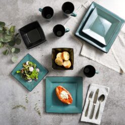 Gibson Elite Kiesling 16 Piece Dinnerware Set, Turquoise