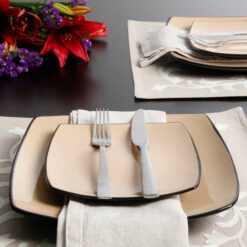 If you are looking to bring a modern feel to your home, this set is an excellent choice. A contemporary square shape and a stunning two-tone color design elevate any occasion and create a beautiful platform to show off your delicious meals. The Gibson Home Soho Lounge collection is available in many colors making it easy to find the right set to go with any table setting. All Soho Lounge items are made of durable stoneware that is both dishwasher and microwave safe. Bring the style and value of Gibson to your home today!