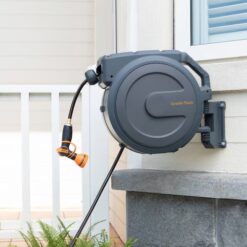 A wall-mounted retractable hose reel provides you with a one-stop watering service. Always prepared to use it anywhere, anytime.