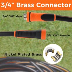- Light Weight – Expertly developed hybrid material from rubber and polymer, the lawn hose is lighter than traditional rubber hose while being abrasion-resistant and durable.