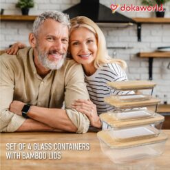Glass Food Storage Containers With Bamboo Lids – Glass Meal Prep Containers – Set of 4 Airtight Stackable Food Storage Kitchen Containers – Eco-Friendly Oven Safe Nesting Lunch Containers
