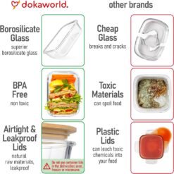 - FRESHNESS ON LOCK – Ever dreamt of a glass meal prep container that guards your food like a culinary fortress? The natural bamboo lids of our glass lunch containers, boasting a seal tighter than a vault, keep your meals pristine.