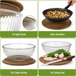 - SPACE-SAVING: STACKABLE glass mixing bowls will save space in your kitchen. The glass round bowls with lids are stackable and neatly nest inside each other, allowing you to store them in cupboards. Compact and oven safe glass bowls.