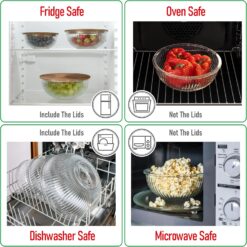 - MULTIPURPOSE: This bowl set with lids is easy to open and close. It lets you identify what’s inside. Our glass container set is perfect for hot and cold foods.