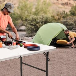- Simple & Sleek Design:The white minimalist design makes this outdoor folding table blend in with any scene, and the size is suitable for 2-6 people. It offers a perfect space for cards, puzzles, games, crafts, picnic and more.
