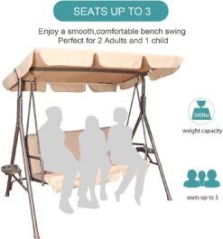 GOLDSUN Durable Outdoor Patio Swing with Side Table Weather Resistant Canopy Swinging Chair with Removable Cushion,Suitable for Garden, Poolside, Balcony, Backyard-Beige (BGSW-817)