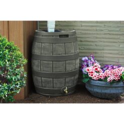The Rain Vault 50 Gal. rain barrel is a classic looking barrel. Modeled after an actual whiskey barrel, this unique rain catcher will provide you with plenty of fresh water while looking great against your home. The top features an anti-debris screen to keep out leaves and bugs. The bottom hosts a high quality brass spigot for a standard hose connection. Look at the back and you’ll see it’s flat to sit flush with exterior walls so you don’t lose space. There are also connection points which can be used to daisy-chain barrels together, using the overflow to fill the next barrel. Aside from the natural wood grain finish, the barrel also has two, deep set handles which are very convenient when moving the Rain Vault. Your plants will love the chemical-free water and this rain barrel is a must-have during times of drought.