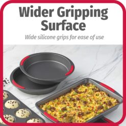 - SECURE SILICONE GRIPS: With ergonomic silicone grips on the handles, these baking supplies offer a comfortable and secure hold. The functional grips make it easier to place them in and out of the oven.
