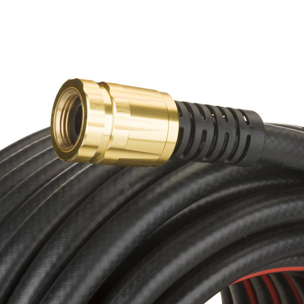 From Goodyear, a brand you can trust for superior performance, comes the Goodyear MAXLite Premium Rubber Hose, a top choice for even the most demanding industrial applications. The Goodyear MAXLite Premium Rubber Hose is made of premium rubber, the hallmark of the Goodyear brand, with an exclusive formula that makes it twice as strong and yet 40 percent lighter than standard rubber hoses. That makes this garden hose not only ideal for use as an industrial rubber hose, but also for the homeowner who appreciates its light weight and flexibility compared with conventional hoses. Extreme temperatures are not an issue for the Goodyear garden hose. It remains flexible from minus 40°F up to hot water at 185°F. This exceptional flexibility also helps the Goodyear water hose tackle small jobs in tight spaces. The Goodyear rubber garden hose has a strong 400 plus psi burst strength and our patented Hose Armour at the female coupling prevents kinking at the water source. The extra-large aluminum couplings make it easy to connect the Goodyear rubber hose to the water source and accessories and are crush-proof even under the weight of heavy machinery. As an added bonus, the Goodyear MAXLite Premium Rubber Hose meets lead-free and phthalate-content standards. A limited lifetime warranty ensures the Goodyear hose is designed to stand up to the rigors of the toughest watering projects for years to come.