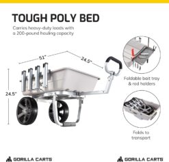 Gorilla Carts 200 Pound Heavy Duty Aluminum Poly Bed Fish and Marine Cart for Fishing, Picnic, and Other Outdoor Activities with Rod Holders, Gray