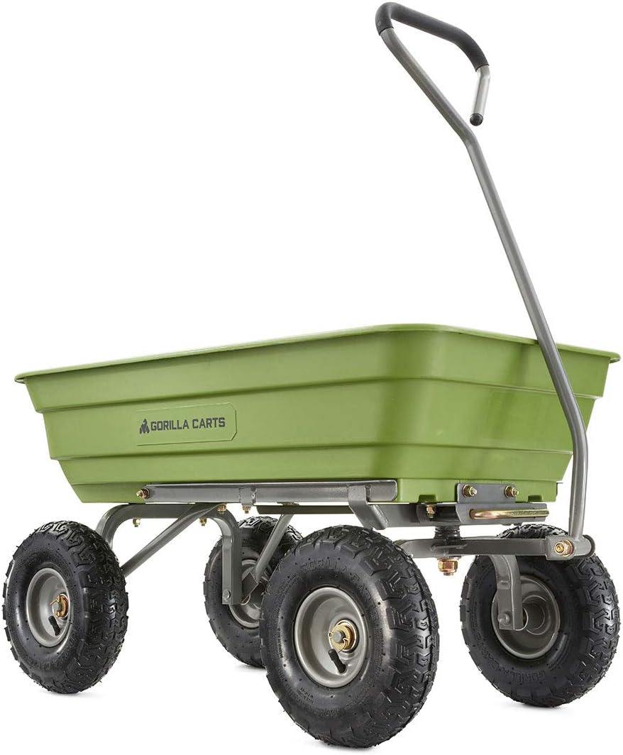 Gorilla Carts 600 Pound Capacity Heavy Duty Poly Yard Garden Steel Quick Dump Utility Wheelbarrow Wagon Trolley Cart with Straight Pull Handle, Green