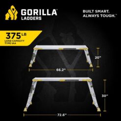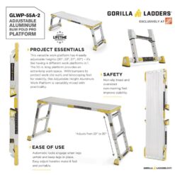 Gorilla Ladders GLWP-55A-2 4.6 ft. x 2.5 ft. Aluminum Heavy-Duty PRO, 2 in. Slim-Fold Work Platform, 4-Adjustable Heights, 375 lbs. Load Capacity