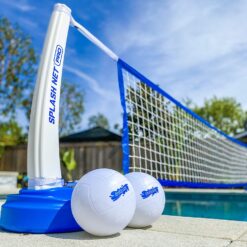 Splash into the ultimate pool day and serve up summer fun with our Volleyball Splash Net Pro. Set includes adjustable volleyball net with side posts, 2 water volleyballs and premium ball pump with inflation needle.