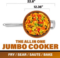 - Jumbo Cooker / Sauté Pan: This deep multipurpose pan is perfect for searing, sautéing, braising, and pan roasting or use it to make flavorful pan sauces and gravies. Designed to respond quickly to changes in cooking temperature, this professional pan features high sides to contain spatters and keep foods inside as you stir and toss them over high heat.