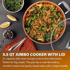 Gotham Steel Nonstick Deep Saute Pan with Lid – 5.5 Quart Large Ceramic Jumbo Cooker 12 Inch Frying Pan with Lid, Stay Cool Handle + Helper Handle, Oven & Dishwasher Safe, 100% PFOA Free
