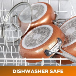 - DISHWASHER SAFE – spend less time with cleanup! After all the cooking and prepping is done, place cookware in the dishwasher for quick and easy cleanup.