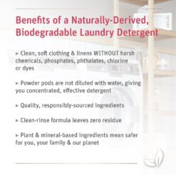 - Specifically formulated for HE & Standard Machines, Free of Phosphates, Naturally Derived Ingredients, No Optical Brighteners, Chlorine or Dyes