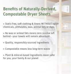 - Naturally effective: these compostable dryer sheets are formulated to soften clothing and linens and reduce static cling.