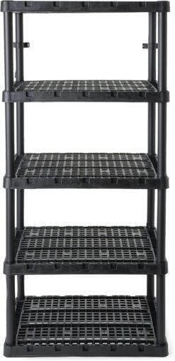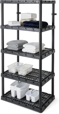 Gracious Living 5 Shelf Knect-A-Shelf Ventilated Extra Heavy Duty Storage Unit 24 x 36 x 72 Organizer System for Home, Garage, Basement & Laundry, Black