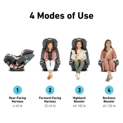 - 4-in-1 car seat gives you 10 years of use: seamlessly transforms from rear-facing harness (4-40 lb) to forward-facing harness (22-65 lb) to highback booster (40-100 lb) to backless booster (40-120 lb)