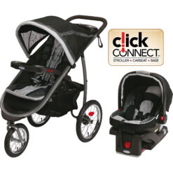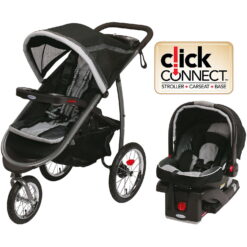 Features: Has Brakes, Lockable Front Swivel, Jogger Travel Systems, 3 Wheeled, One-second, one-hand fold provides the ultimate in convenience for moms on-the-go, Has Canopy, Locking front swivel wheel provides an easy transition from daily strolling to jogging; Lock the front wheel in this car seat stroller combo for added stability while running and unlock the wheel for maneuverability on daily strolls, Aire Filled Tires, Has Suspension System, Jogging travel system features air-filled rubber tires that offer suspension for a smooth ride on any terrain, Deluxe, padded, multi-position reclining seat for baby’s comfort, Has Front Locking Wheels, Includes the Graco Snug Ride Click Connect 35 infant car seat, rear facing for infants from 4-35 pounds and up to 32″