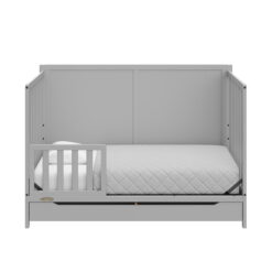 Bring your dream nursery to life with the Graco® Melrose 5-in-1 Convertible Crib with Drawer. With its timeless, versatile design, the Melrose is the perfect addition to any nursery – and easy to match with any style. The Melrose is crafted from pine wood, engineered wood, and wood composites, includes Euro drawer glides, and its applied finish has been tested to meet or exceed the applicable ASTM and CPSIA safety standards. The Graco® Melrose 5-in-1 Convertible Crib with Drawer is GREENGUARD Gold Certified — Certified products are screened for more than 10,000 chemicals and VOCs known to pollute indoor air. Also, the Melrose is JPMA Certified — meaning it’s been expert tested by third-party, accredited laboratories to meet or exceed all of the applicable category voluntary and mandatory safety standards. Designed to adapt to your growing baby, the Melrose is equipped with an adjustable mattress support base with 4 different height options – meaning, the height of the mattress support base can be lowered as your child grows (please note, this crib may only be used until your child can easily climb out or is taller than 35 inches). To support your child’s journey from babyhood to toddlerhood and beyond, the Melrose is able to be converted from a crib to a toddler bed (compatible with 1 or 2 toddler guardrails, each sold separately), daybed, and full-size bed with headboard and optional footboard (compatible full-size conversion kit sold separately). The Graco® Melrose 5-in-1 Convertible Crib with Drawer is designed to accommodate any standard full-size crib & toddler mattress (mattress sold separately – we recommend any Graco® crib mattress to pair with your Melrose). Graco® is the proud recipient of the Parent Tested Parent Approved (PTPA) Seal of Approval for nursery and children’s bedroom furniture, and the 2023 Women’s Choice Award for 9 out of 10 Recommended Baby & Kids Furniture. Backed by a 1-year limited manufacturer’s warranty. Assembly required. Mattress sold separately.