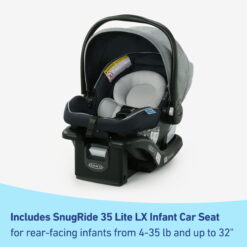 - Includes the Graco® SnugRide® 35 Lite LX Infant Car Seat, rear-facing for infants from 4-35 lb and up to 32″